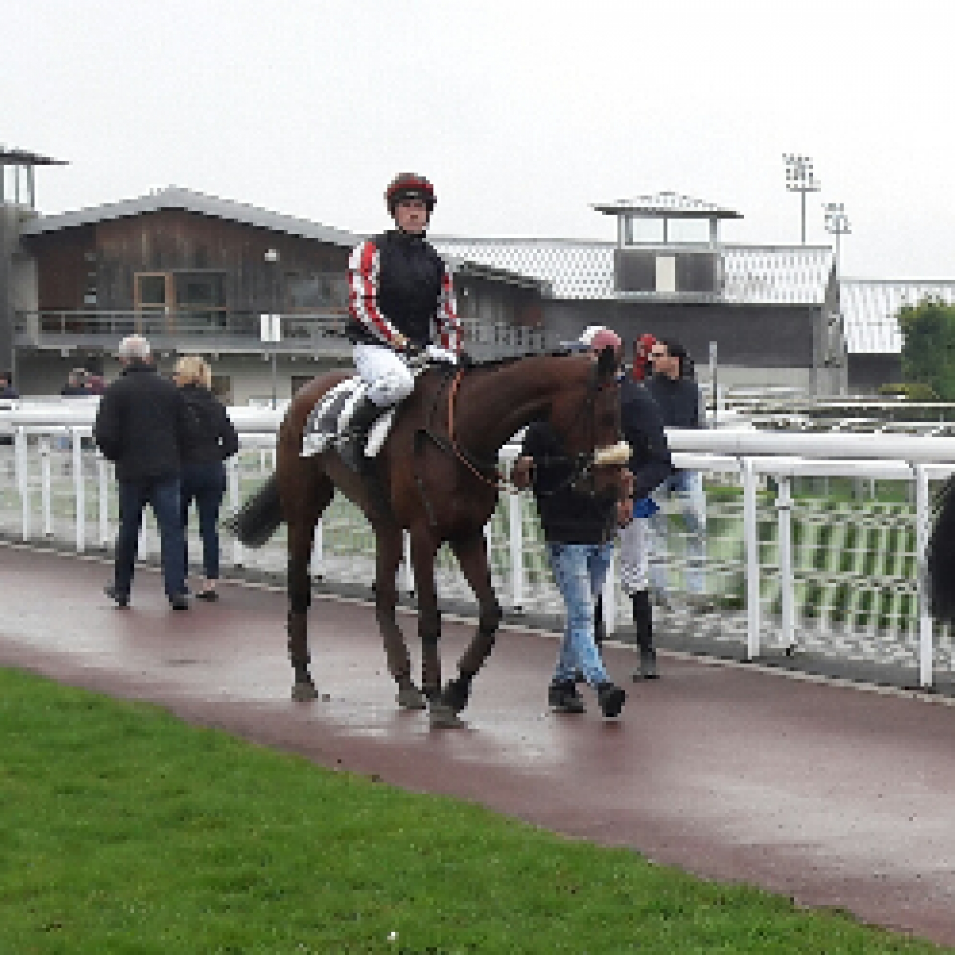 En descendant de cheval, son jockey, Félix de Gilles qui nous a dit " Bon cheval avec des moyens, mais tardif " ...