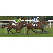 Monté par Pierre Charles Boudot, il est parti en bon rang, s'est glissé derrière le leader et à la sortie du virage ...ils se sont livrés à une belle bagarre ... luttant pied à pied enfin " sabot à sabot !! ...